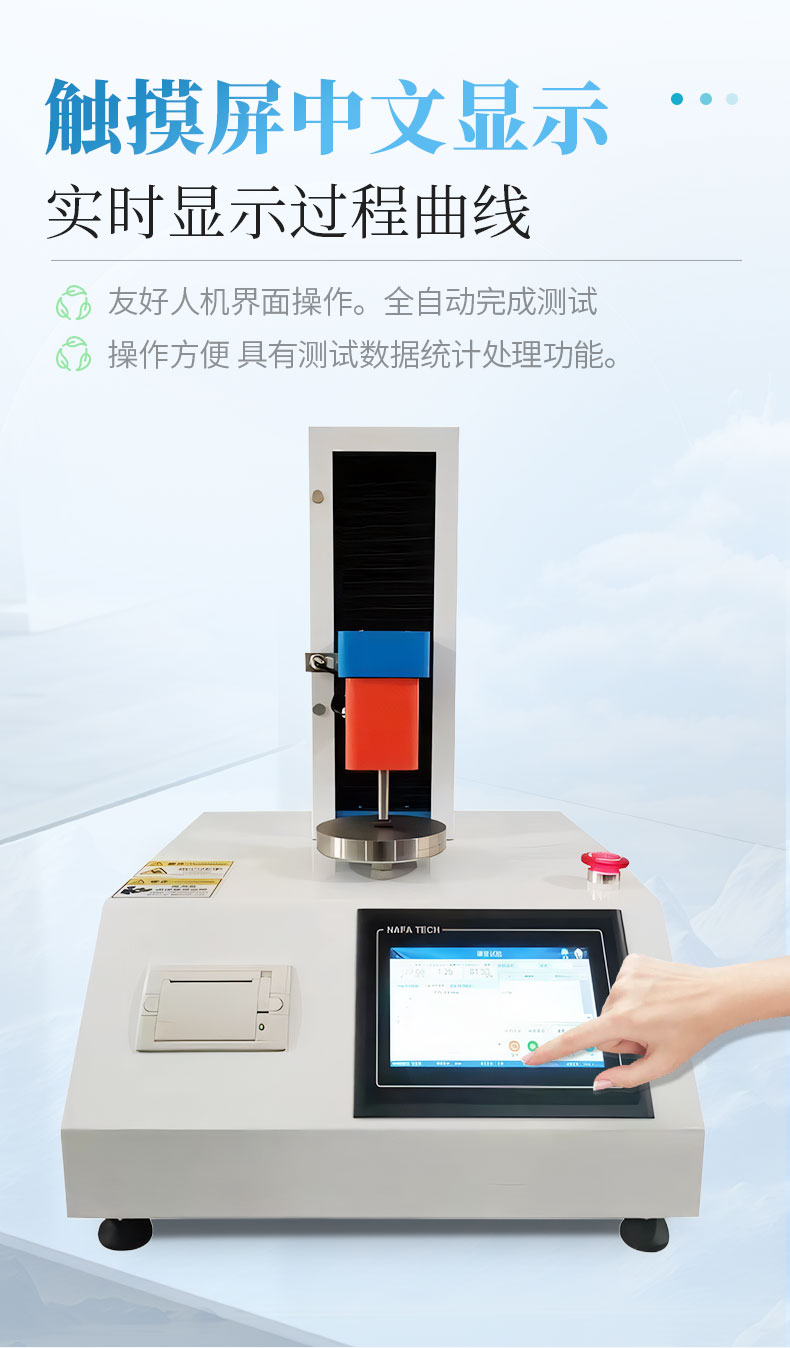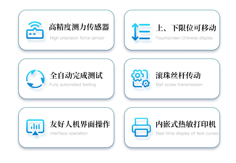 3、大觸摸屏中文顯示(可中英文切換),友好人機(jī)界面操作。全自動(dòng)完成測試。操作方便,具有測試數(shù)據(jù)統(tǒng)計(jì)處理功能。