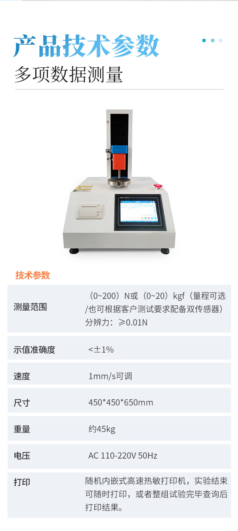 1、測量范圍:(0~200)N或(0~20)kgf(量程可選/也可根據(jù)客戶測試要求配備雙傳感器)分辨力:≥0.01N