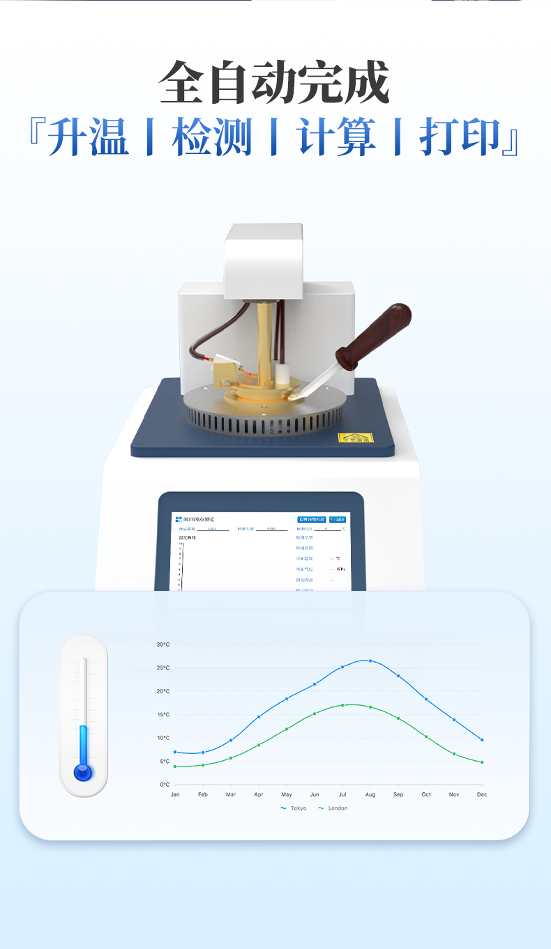 儀器按照GB/T 261-2021方法規(guī)定的升溫曲線加熱,溫度接近預(yù)期閃點值時自動點火,當(dāng)出現(xiàn)閃點時儀器自動鎖定結(jié)果,并顯示和打印,同時啟動風(fēng)機自動對加熱器進行冷卻。