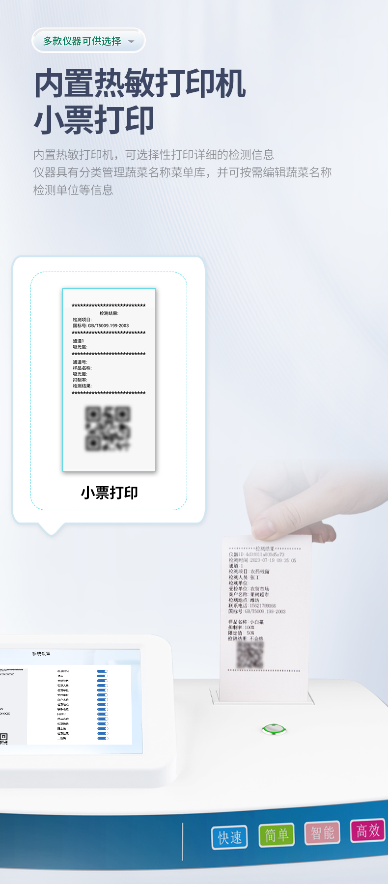該儀器為三體儀器新研發(fā)一款農(nóng)殘快速檢測儀,采用國標(biāo)速測卡,使檢測速度更快,操作更加簡便。檢測標(biāo)準(zhǔn):依據(jù)國家標(biāo)準(zhǔn)方法(GB/T5009.199-2003)以及世界衛(wèi)生組織WHO、世界糧農(nóng)組織FAO殘留農(nóng)藥檢測標(biāo)準(zhǔn)、世界環(huán)境保護局EPA參照攝入量等要求來設(shè)計。